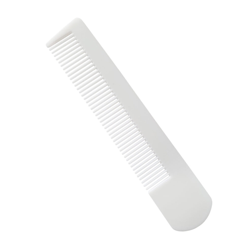 Der Kunststoff-Kamm ist ca. 16 cm lang und einzeln verpackt in einem neutralen Polybeutel.